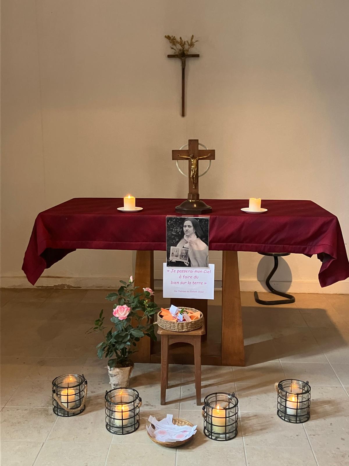 Mardi 1er octobre, tous les élèves du collège ont été invités à un temps de prière à la chapelle du collège pour fêter Sainte Thérèse de l'Enfant Jésus, sainte patronne de notre pastorale au collège. Sainte Thérèse a eu cette intuition avant de mourir que sa mission allait commencer :« Je compte bien ne pas rester inactive au Ciel, mon désir est de travailler encore pour l’Église et pour les âmes. Je le demande au bon Dieu et je suis certaine qu’Il m’exaucera. »