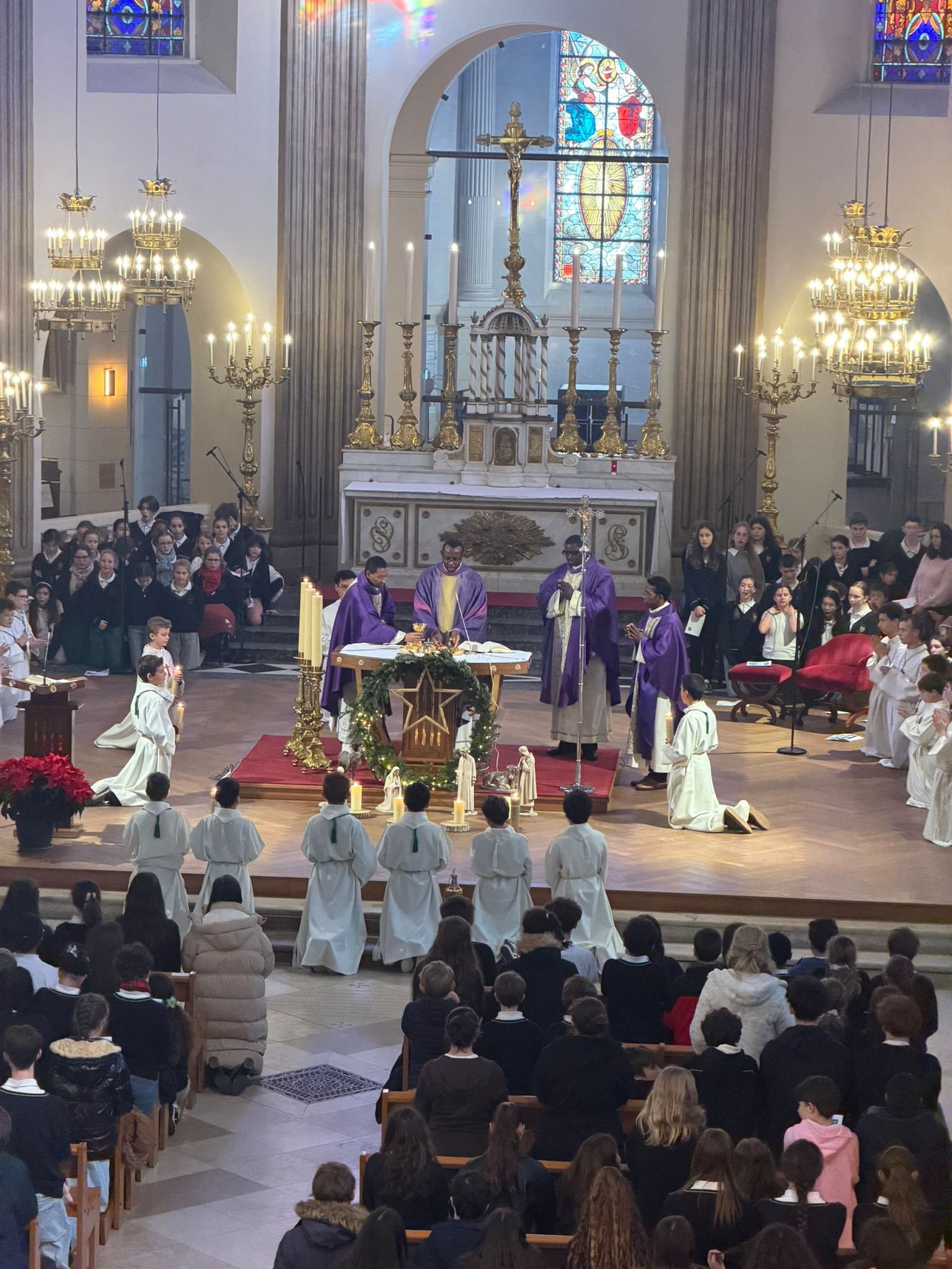 Belle participation à la messe ICEF de l'avent célébrée jeudi à l'église St Louis, entourant nos 12 élèves catéchumènes pour leur première étape de baptême.